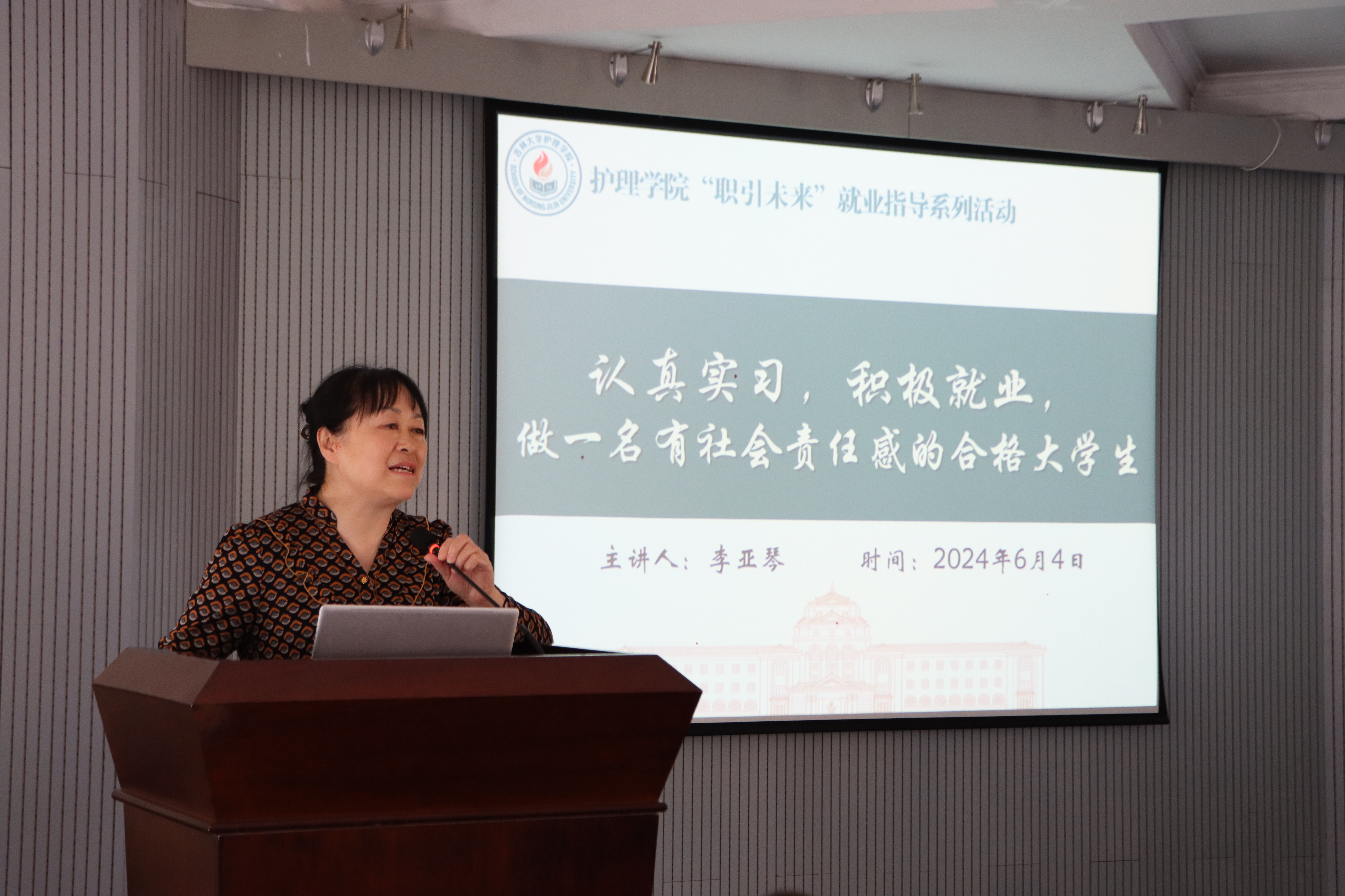 在就业指导方面,李亚琴老师结合以往毕业生在保研、考研、选调生、考公、部队文职、出国留学、临床就业等生动的案例,从了解就业形势和政策、做好求职择业准备、掌握就业方法和技巧等方面为学生提供了全面的建议。针对当前出现的慢就业、不就业现象,她从“就业是事关家庭、学校、社会的大事,是国家大事”层面,希望大家克服就业过程中遇到的困难和挫折,充分利用社会支持系统,提前做好职业规划,积极就业,做一名有社会责任感的合格大学生,为社会做出积极贡献。