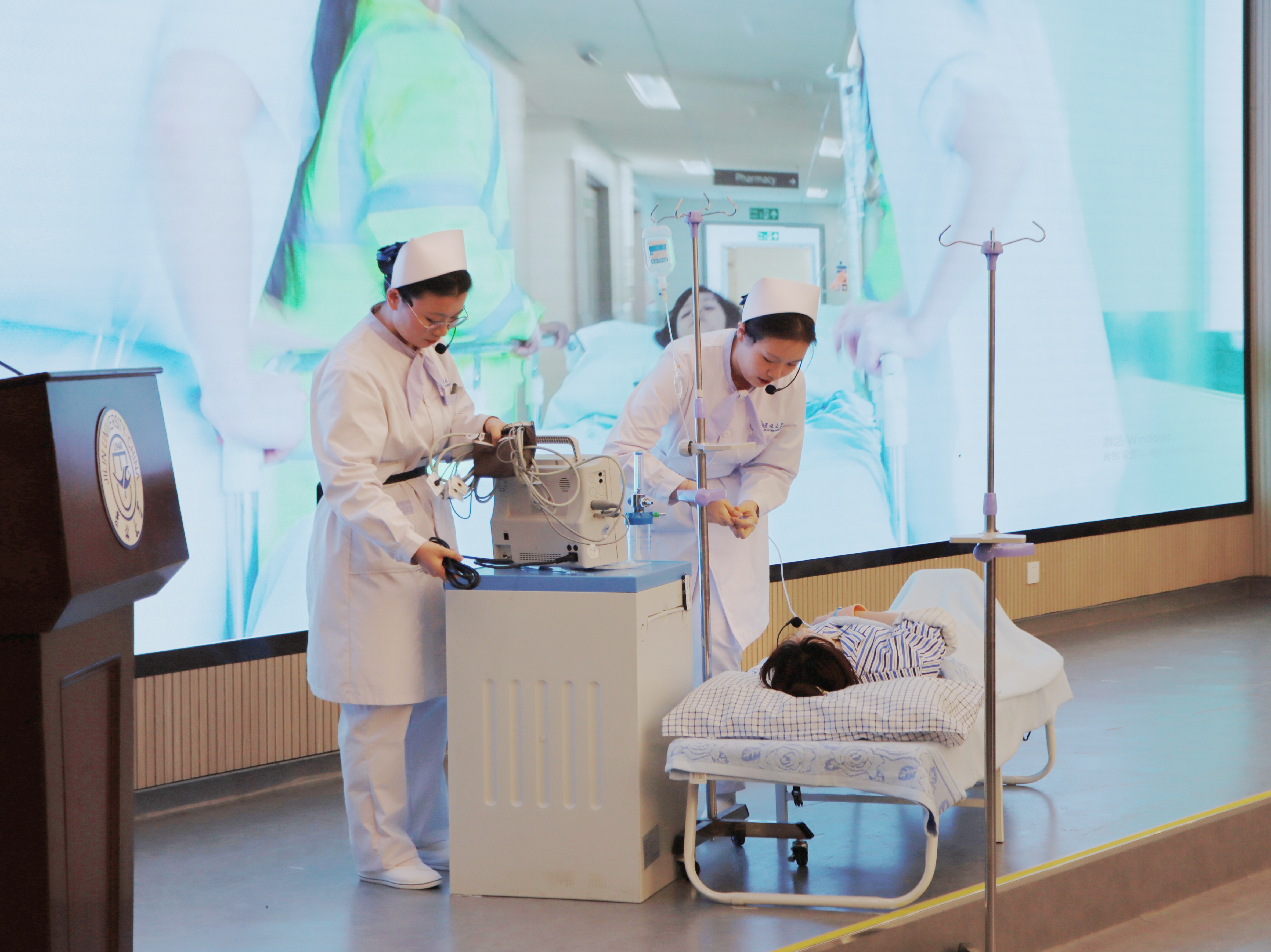 同时,为检验学生所学专业知识,提升学生专业实践操作能力,由护理礼仪大赛和护理操作大赛的获奖选手进行护理礼仪和护理操作现场展示。礼仪展示,把护士的行、坐、拾物等礼仪在舞台上呈现给大家,展现了护理人的优良仪表与精神风貌。操作展示,通过情景剧的形式,展示了 护理工作者严谨的工作态度、标准的操作流程,工作中的慎独精神,急救处理能力等。