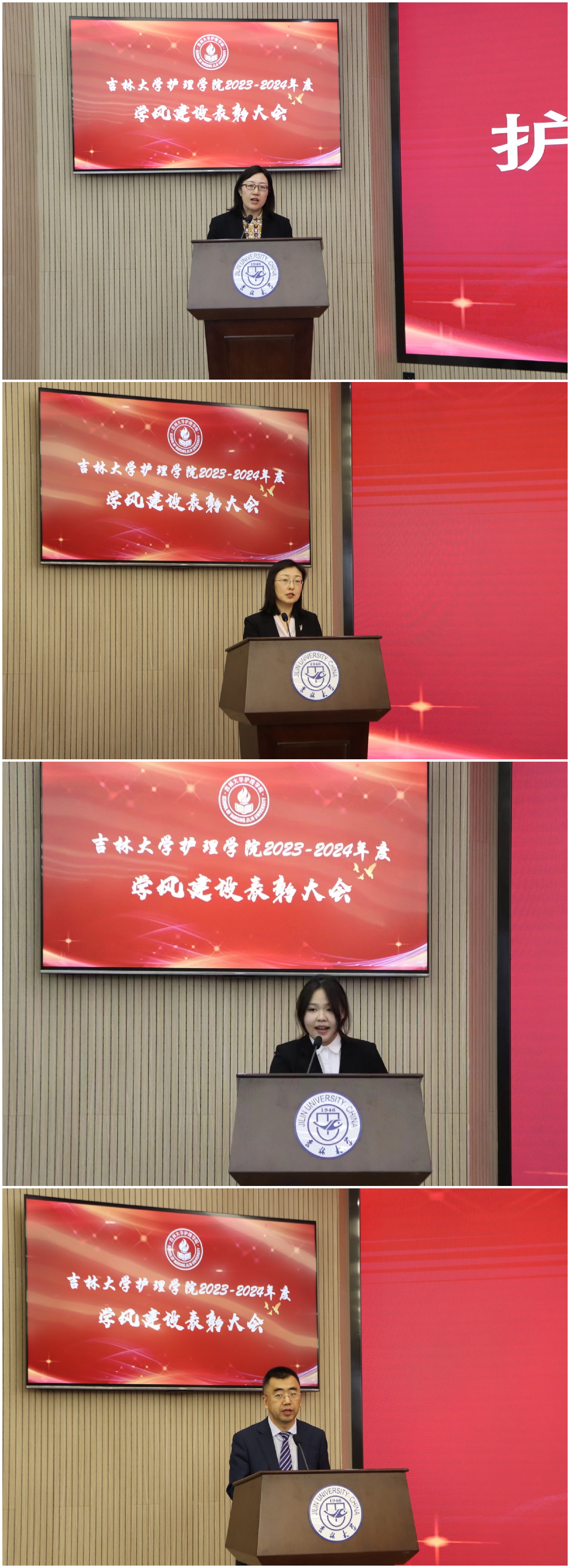 为庆祝第113个国际护士节,表彰在学风建设中表现突出的先进集体及个人,推动全院师生深入践行白求恩精神和南丁格尔精神,提升学生的自主学习和自我发展能力,2024年5月11日下午,jinnianhui今年会在新民校区第一教学楼白求恩大讲堂举行2023—2024年度学风建设表彰大会。jinnianhui今年会党委书记韩月波、副院长李峰、党委副书记兼副院长葛宗梅、副院长李昆,今年会官方网站第一医院护理部副主任丛悦、今年会官方网站第二医院护理部副主任吴淑华、今年会官方网站中日联谊医院护理部副主任肖蒙、今年会官方网站口腔医院护士长陈实,以及学院教师和学生代表参加了本次大会。大会由葛宗梅主持。