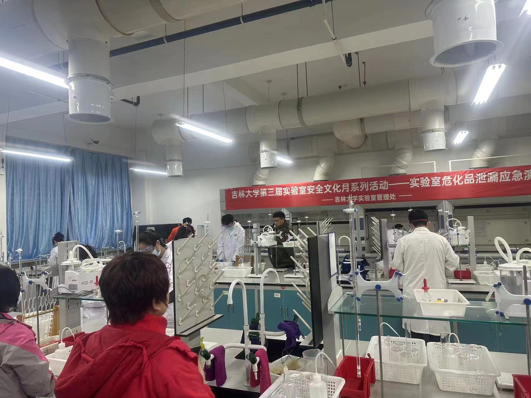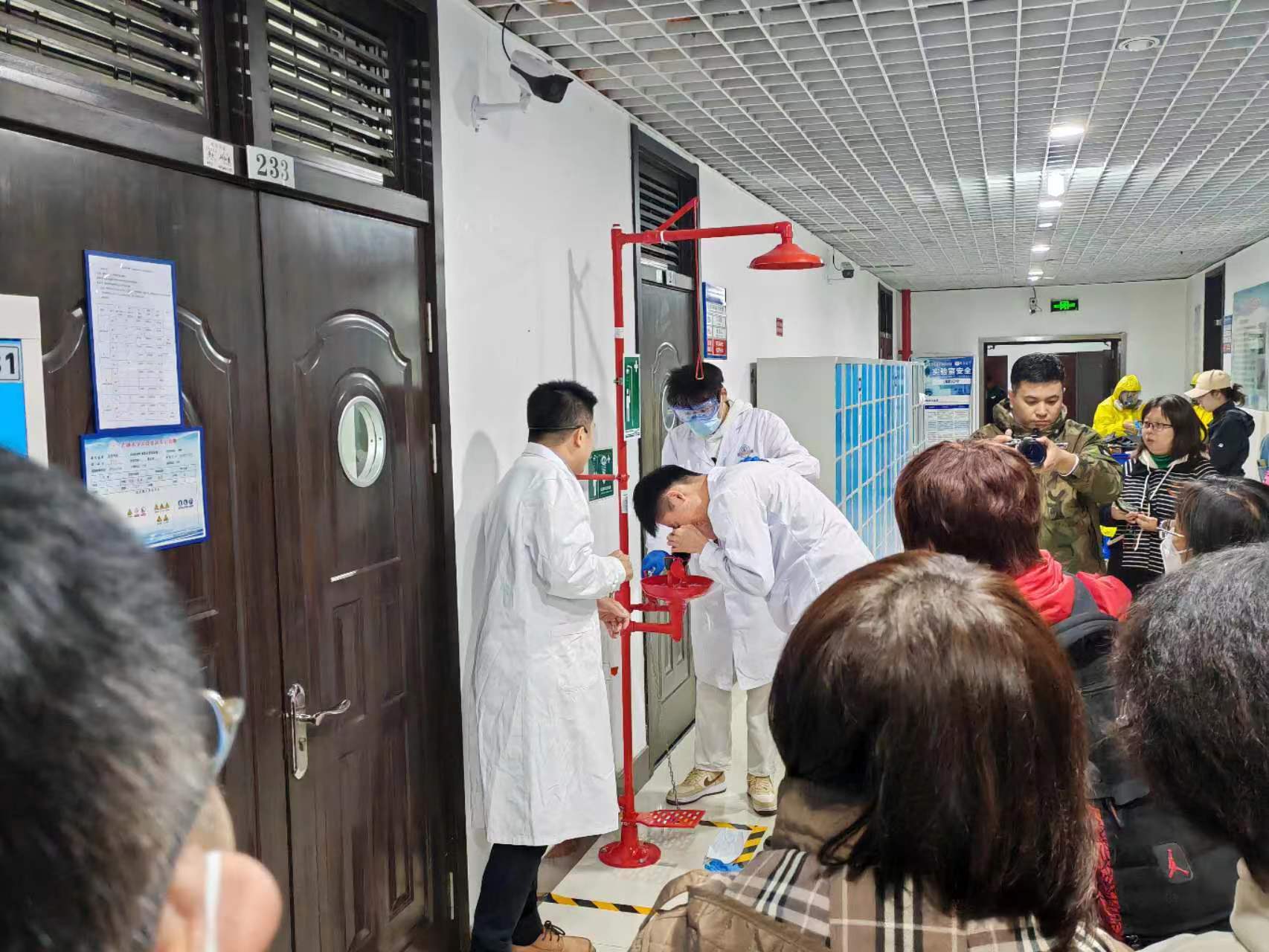 为加强实验室安全管理,提升师生实验室安全技能,使师生掌握实验室相关应急处置的正确措施,10月18-20日今年会官方网站实验室管理处开展了“今年会官方网站第三届实验室安全文化月系列活动——实验室安全应急演练”。为确保在实验室事故发生时能够迅速做出正确的应急处置,jinnianhui今年会教师姜健带领学生们观摩了18日上午8点30分在李四光实验楼231实验室进行的危化品/废液泄漏应急演练。