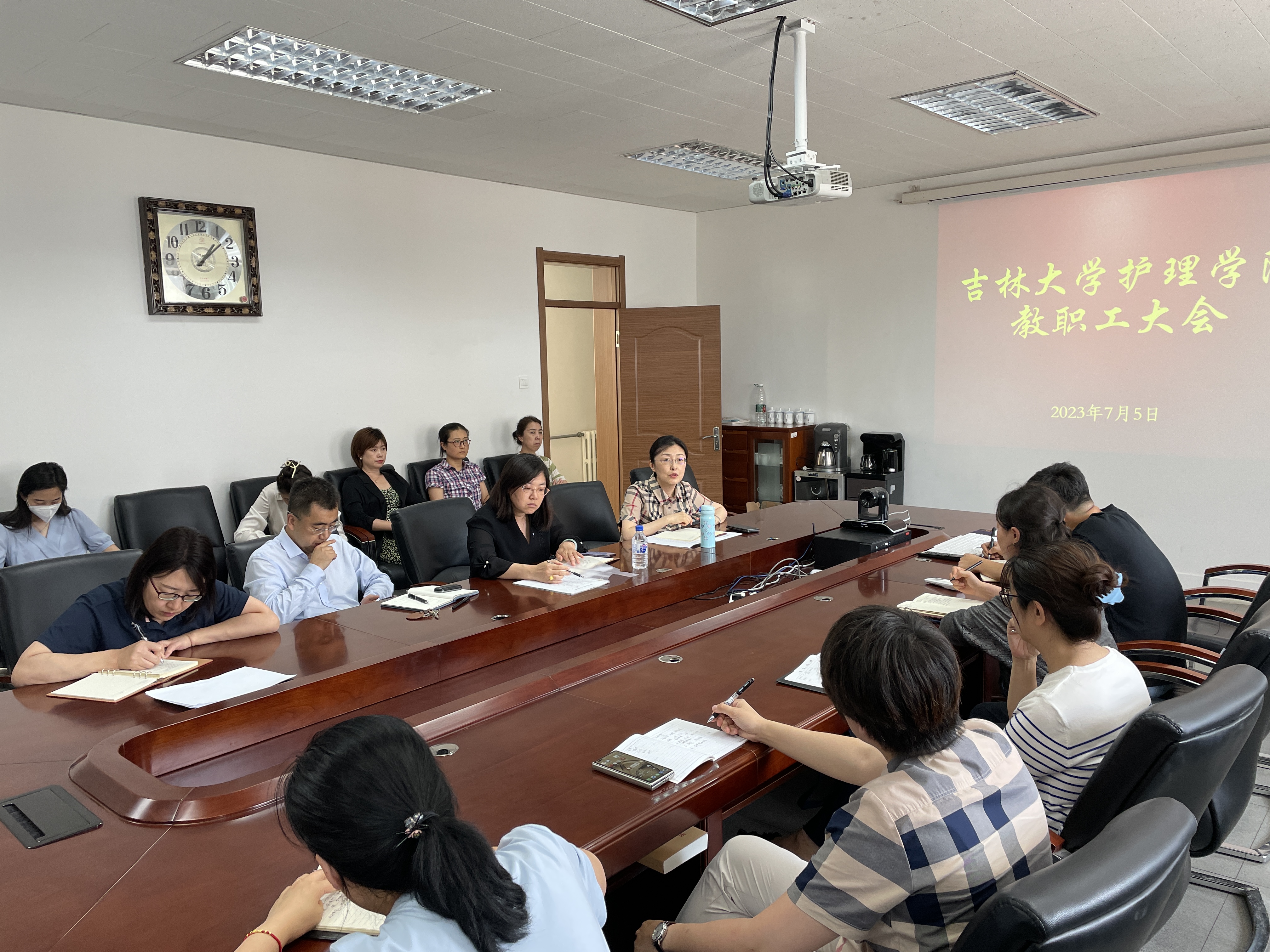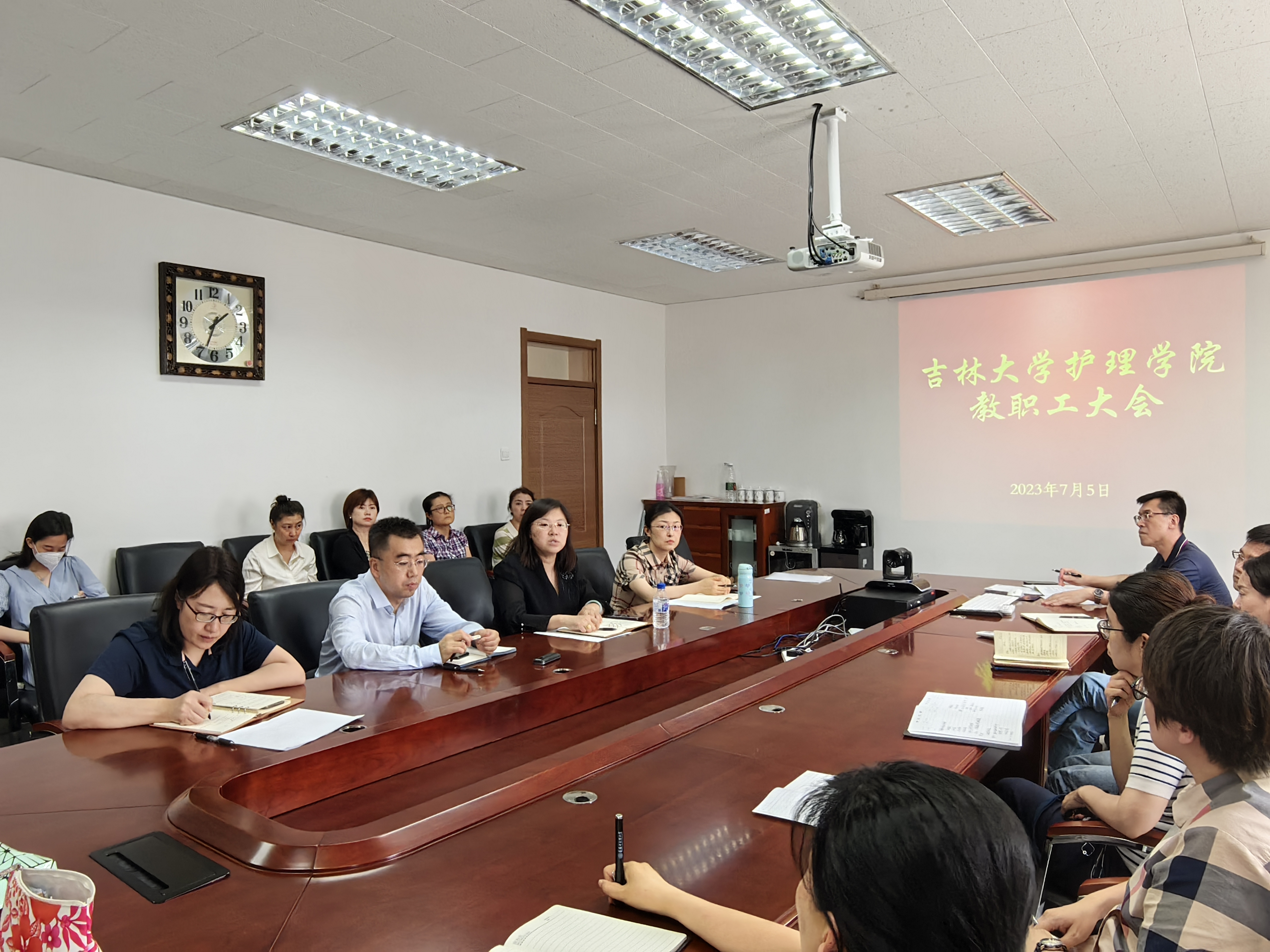 7月5日下午,jinnianhui今年会在三楼会议室召开2023年第六次全院教职工大会,全体教职工参加会议。会议由副院长李峰主持。