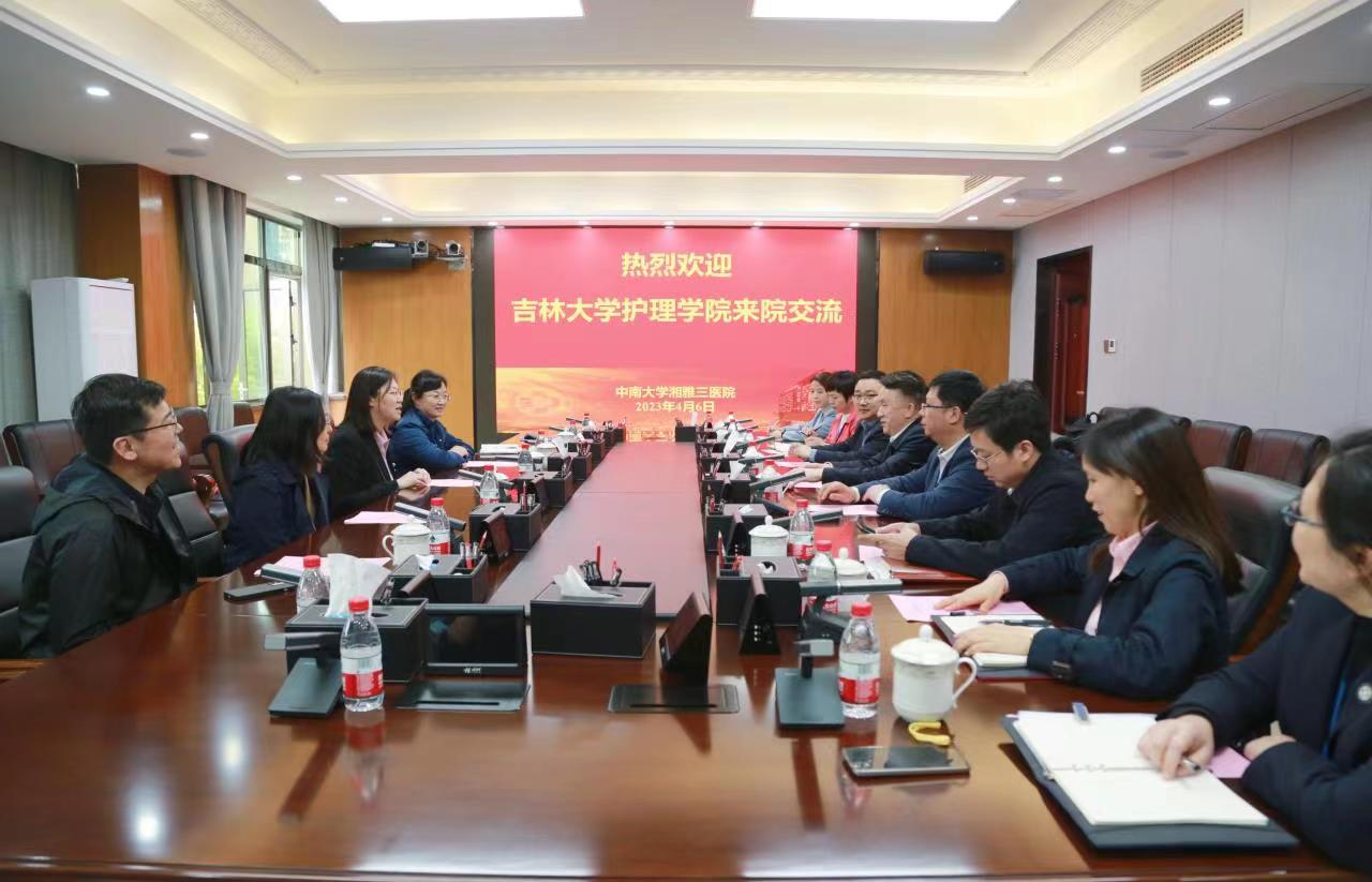 4月6日下午,jinnianhui今年会党委书记韩月波、副院长李昆等一行5人前往中南大学湘雅三医院进行调研交流。中南大学湘雅三医院党委书记何庆南、党委副书记杨飞龙、副院长曹科、党委办公室主任许泽华、护理部主任严谨、护理教研室主任毛平等参加调研座谈会。杨飞龙副书记主持会议。