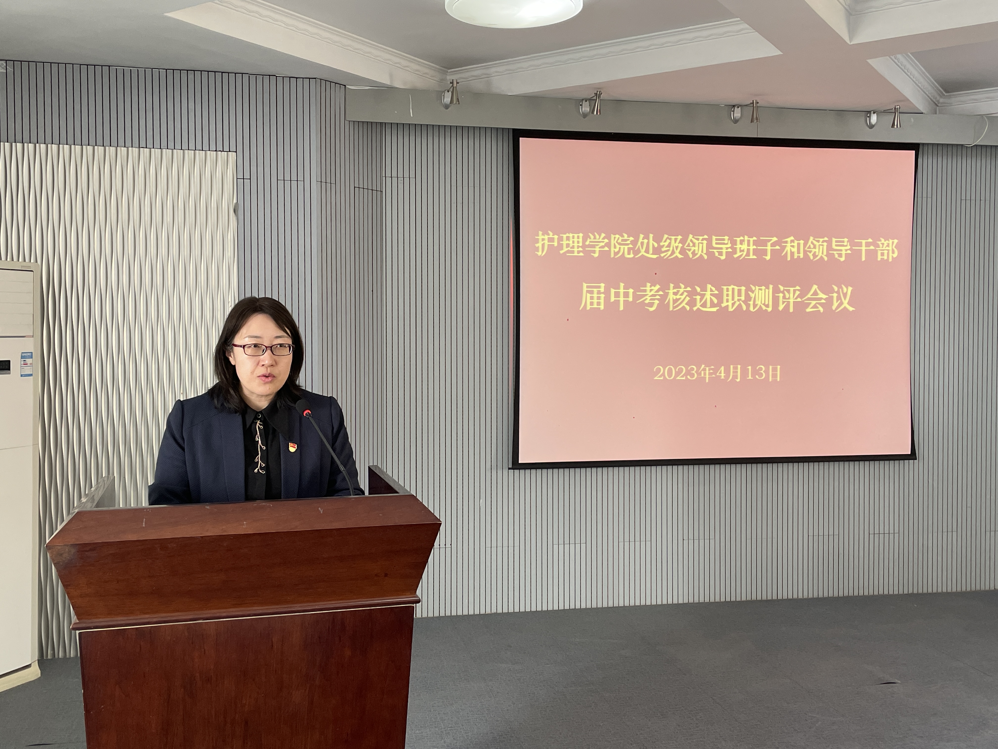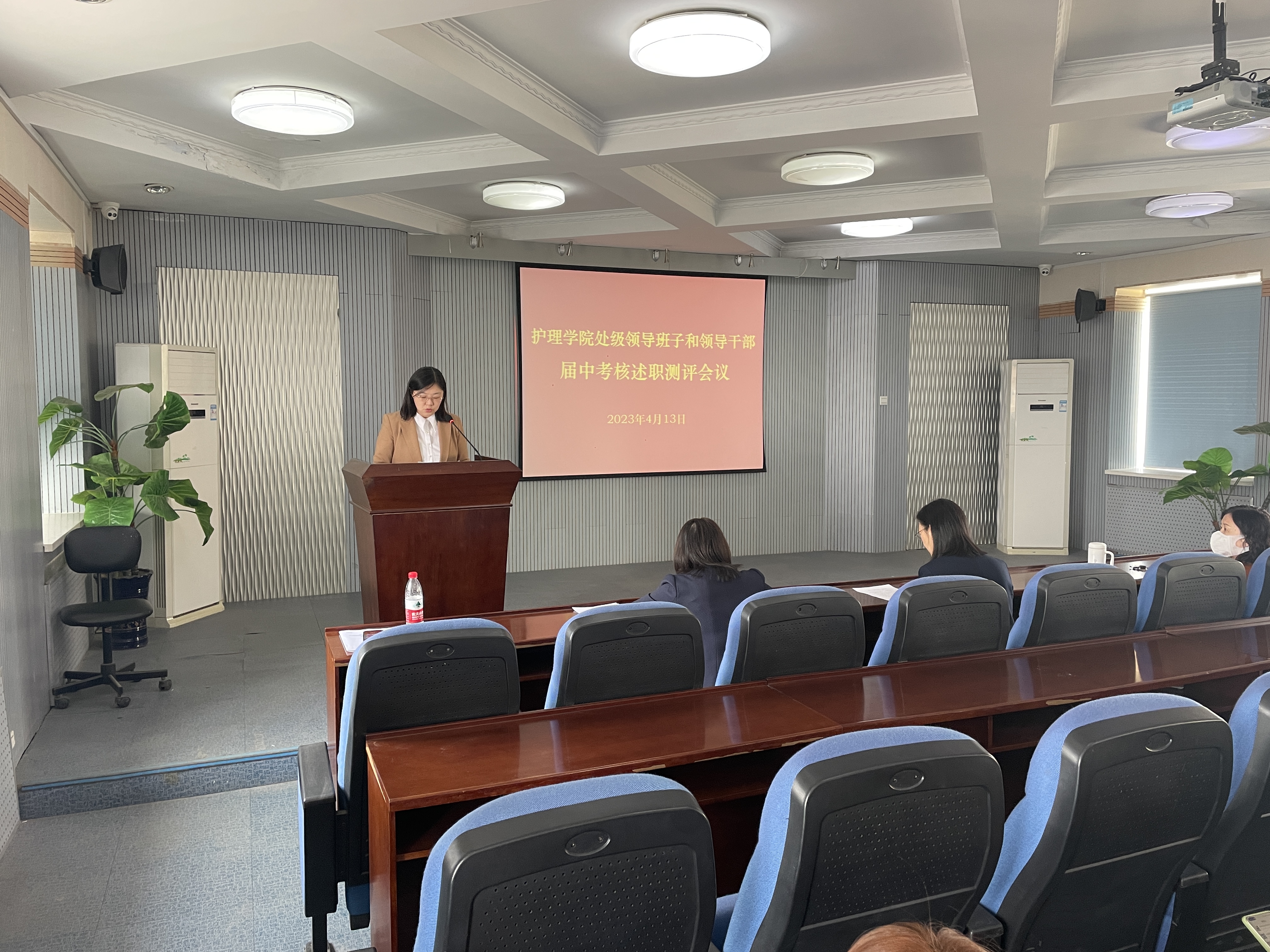 副院长李峰从加强理论学习,不断提升执政管理能力、完善学科建设,推动学院新医科创新发展、创新科研思维,深化学科融合,促进成果产出、狠抓学风建设,深化研究生管理工作等方面工作进行述职。