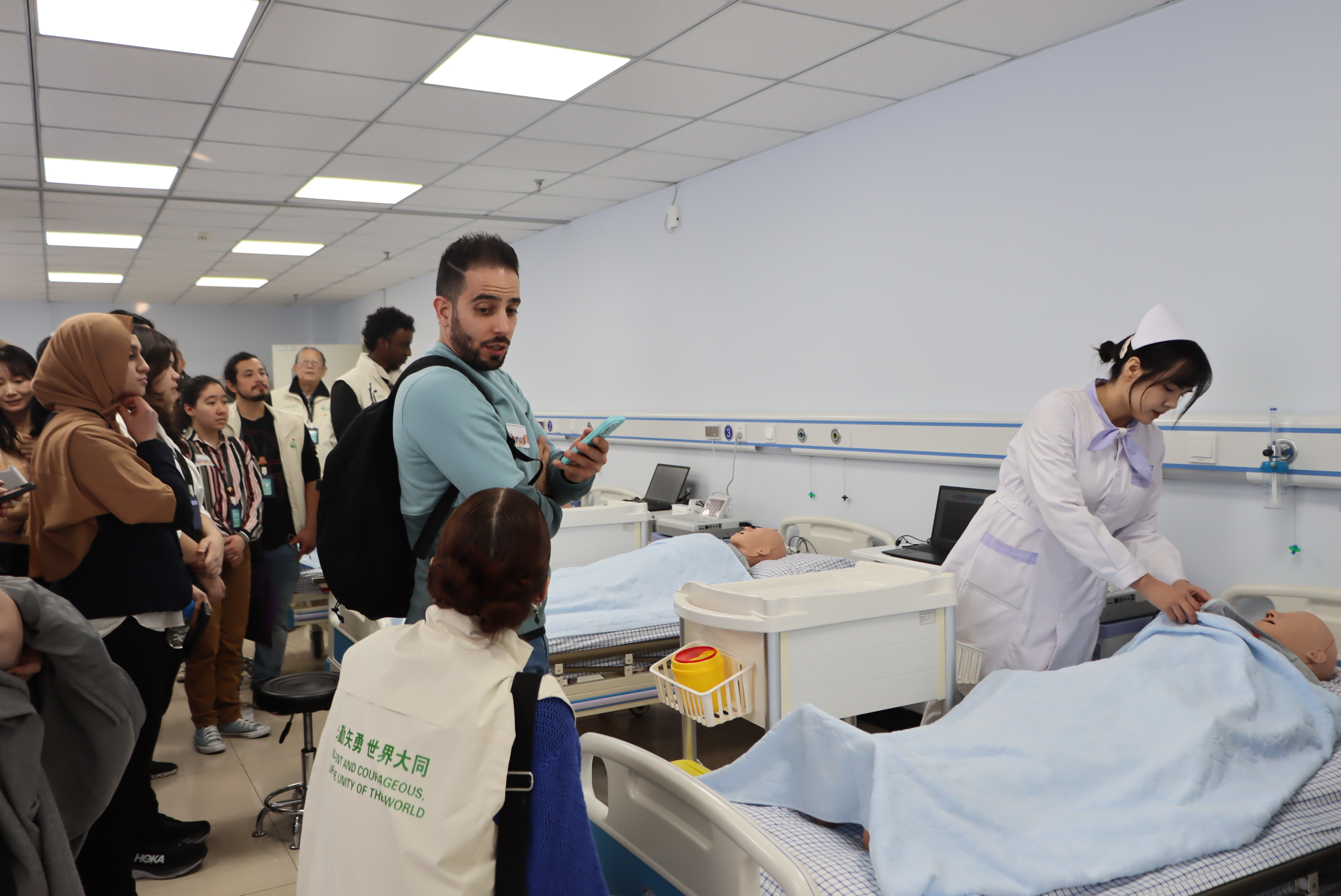 访华团一行首先参观了护理学实验教学中心内科、外科、妇科、儿科实验室,随后来到康复治疗学实验教学中心参观了作业治疗、物理治疗实验室。访华团成员对实验中心各种仪器设备非常感兴趣,并在参观期间与学院师生进行友好互动。