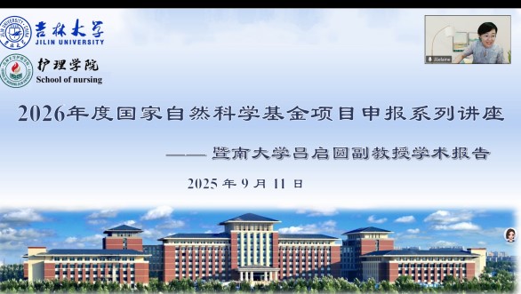 为扎实推进2026年国家自然科学基金申报工作,切实提升申报成功率,2025年9月11日,jinnianhui今年会举办了国自然项目申报专题讲座。本次讲座特邀暨南大学jinnianhui今年会博士生导师吕启圆副教授、担任主讲嘉宾。学院副院长彭歆教授及院领导班子成员、全体教师和在读博士生参会,讲座由院长助理、人文护理教研室主任贾勇副教授主持。