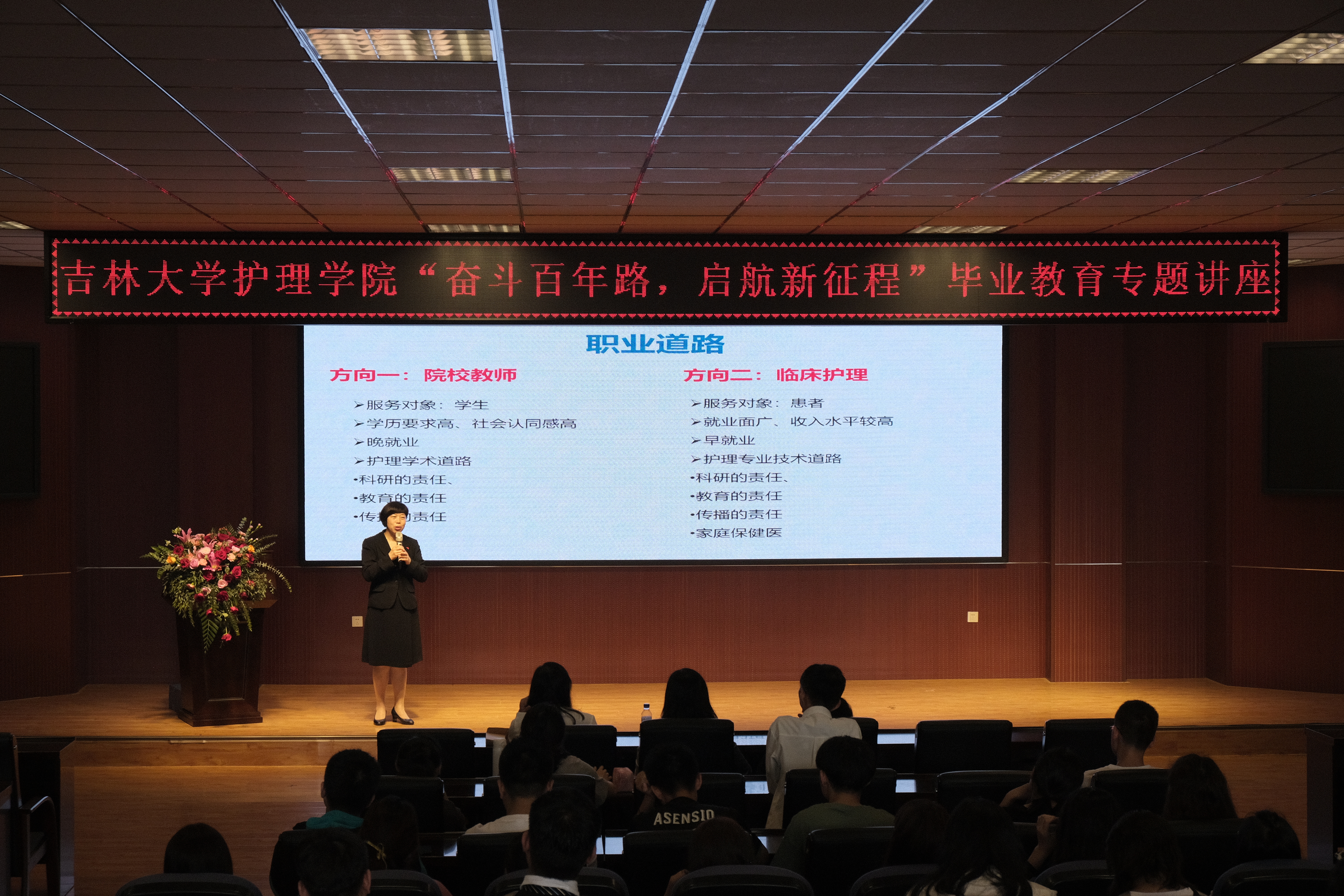 为使毕业生尽快做好心理调适和角色转变以应对崭新职场环境,6月17日,jinnianhui今年会举办“奋斗百年路 启航新征程”毕业教育专题讲座。本次讲座邀请了今年会官方网站第二医院副院长、中华护理学会理事、南丁格尔奖章获得者殷艳玲老师传经送宝。院党委书记韩月波、党委副书兼副院长葛宗梅、学生工作办公室主任常方圆,辅导员李亚琴、刘宇飞,以及2017级全体毕业生和2018级学生参加了本次讲座。