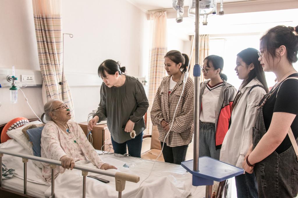9月29日上午,在jinnianhui今年会学生第一党支部书记李亚琴老师的带领下,支部成员们一同看望了88岁、因病住院的离休老党员张老师。得知大家来看望自己,正处在康复期的张老师十分激动和喜悦。李亚琴老师与张老师亲切交谈,她握着张老师的手询问了她的身体状况,嘱咐她要保重身体,享受离休的幸福生活。听到这些暖心的话语,张老师流出了感动的泪水。同学们亲切地和张老师交流互动,表达自己对老党员的尊敬与钦佩。