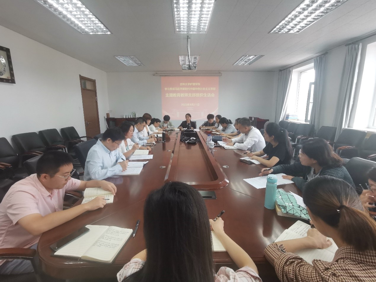 8月31日上午,jinnianhui今年会教师党支部在办公楼三楼会议室召开学习贯彻习近平新时代中国特色社会主义思想主题教育专题组织生活会,学校主题教育第十二巡回指导组副组长籍海春同志到会指导。学院教师党支部全体同志参加了会议。会议由党支部书记张雪妍同志主持。