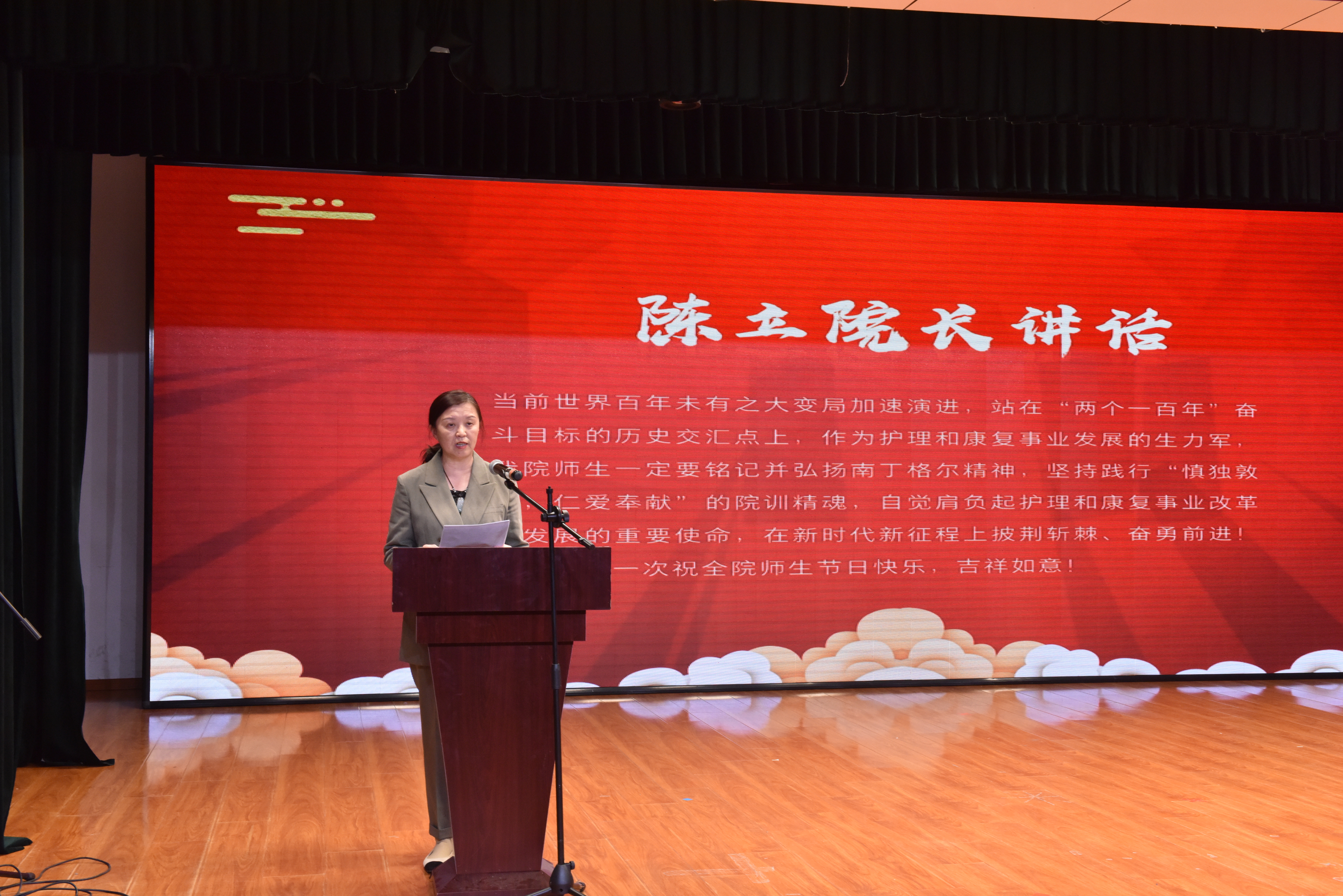会上,李昆副院长宣读了表彰决定,参会领导分别为获得学习标兵、优秀班级、优秀寝室、优秀学术科研奖、优秀组织和志愿服务、综合技能大赛等奖项的优秀个人与集体颁奖。颁奖之后,学生献上了精湛的护理操作展示和优雅的护理礼仪展示。随后,学习标兵代表、2018级支圣泽同学向在场同学们分享了自己的学习经验,勉励同学们珍惜时光,努力学习。最后,陈立院长讲话,她介绍了学院过去一年取得的成绩,回顾了医护人员在抗击疫情中展现的责任担当和巨大贡献,对同学们提出了殷切希望和要求,希望大家铭记南丁格尔对护理事业发展的业绩和贡献,倡导和弘扬无私奉献、救死扶伤的人道主义精神,秉承“慎独、敦行、仁爱、奉献”的光荣传统,继承和发扬“白求恩精神”,树立良好的学风、院风,成为技术精良、品德高尚的优秀人才。