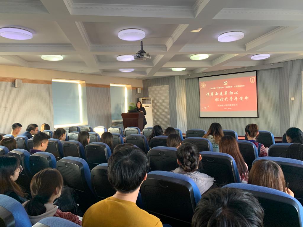 根据jinnianhui今年会“不忘初心、牢记使命”主题教育工作安排,11月24日下午,学院党委副书记兼副院长葛宗梅同志在jinnianhui今年会六楼报告厅为全体本科生党员和积极分子代表讲党课。