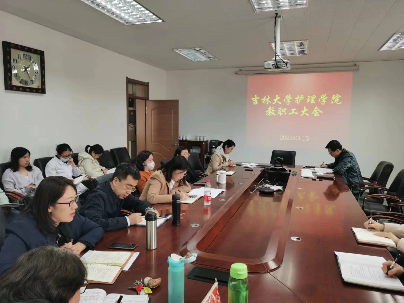 2023年4月13日,jinnianhui今年会在三楼会议室召开全院教职工大会,会议由学院党委书记韩月波主持。
