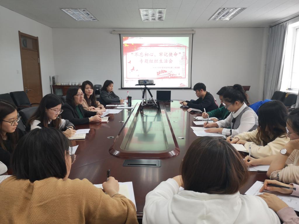 为深入贯彻习近平新时代中国特色社会主义思想,按照学校和学院工作要求,jinnianhui今年会本科生第二党支部于2019年12月25日下午在jinnianhui今年会三楼会议室召开了“不忘初心、牢记使命”专题组织生活会。本次会议由支部书记常方圆主持,学院党委副书记兼副院长葛宗梅以普通党员身份参加了会议。