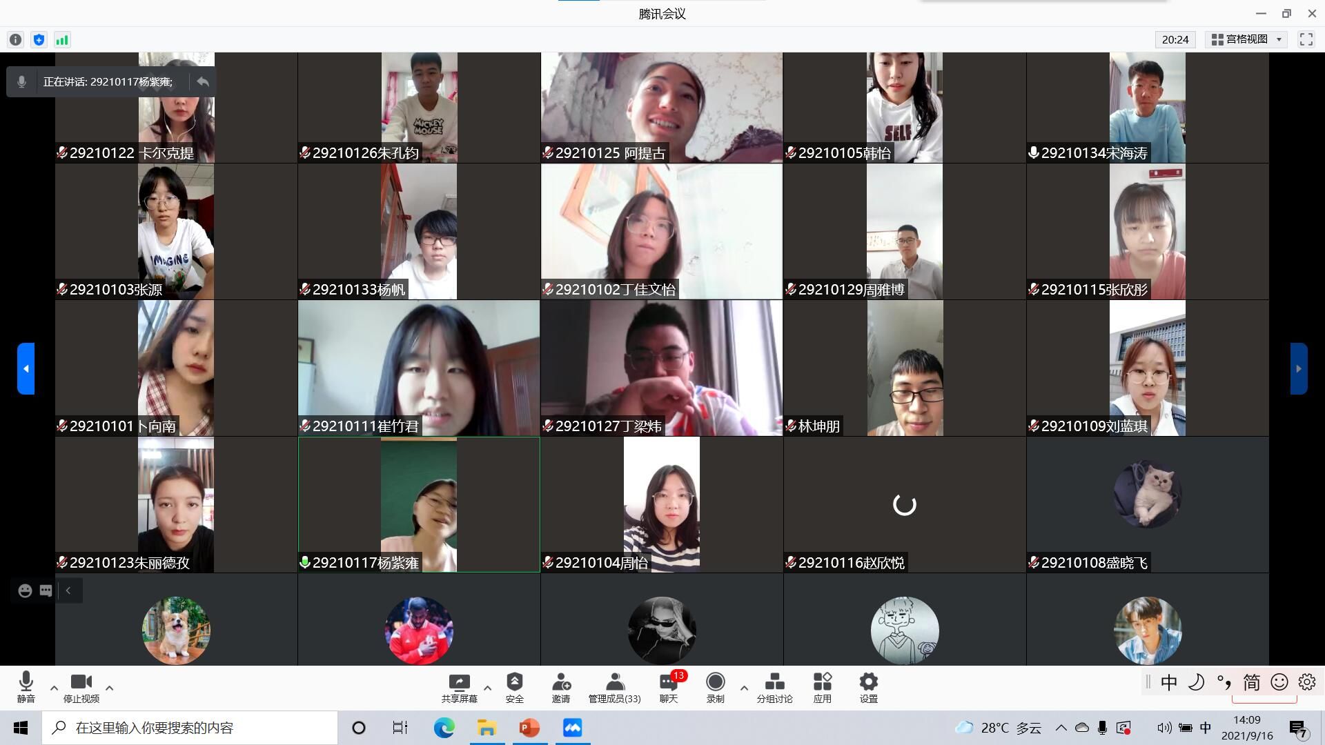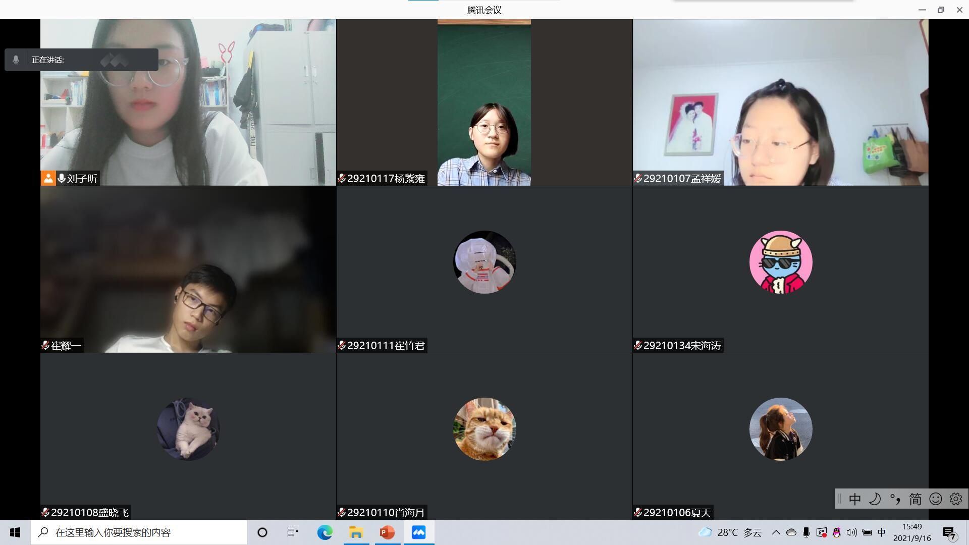 在本次预宣教工作中,葛书记率先召开线上新生见面会,帮助2021级新生相互认识,与新同学建立联系,而后jinnianhui今年会2021级以班级为单位于9月14日、9月15日开展线上破冰班会。尽管大家来自天南海北,但同学们仍积极踊跃发言,这一时的距离阻挡不了他们内心的火热以及讨论的热情。同学们在交流中绽放自我,认识彼此,更加增强了班级凝聚力。