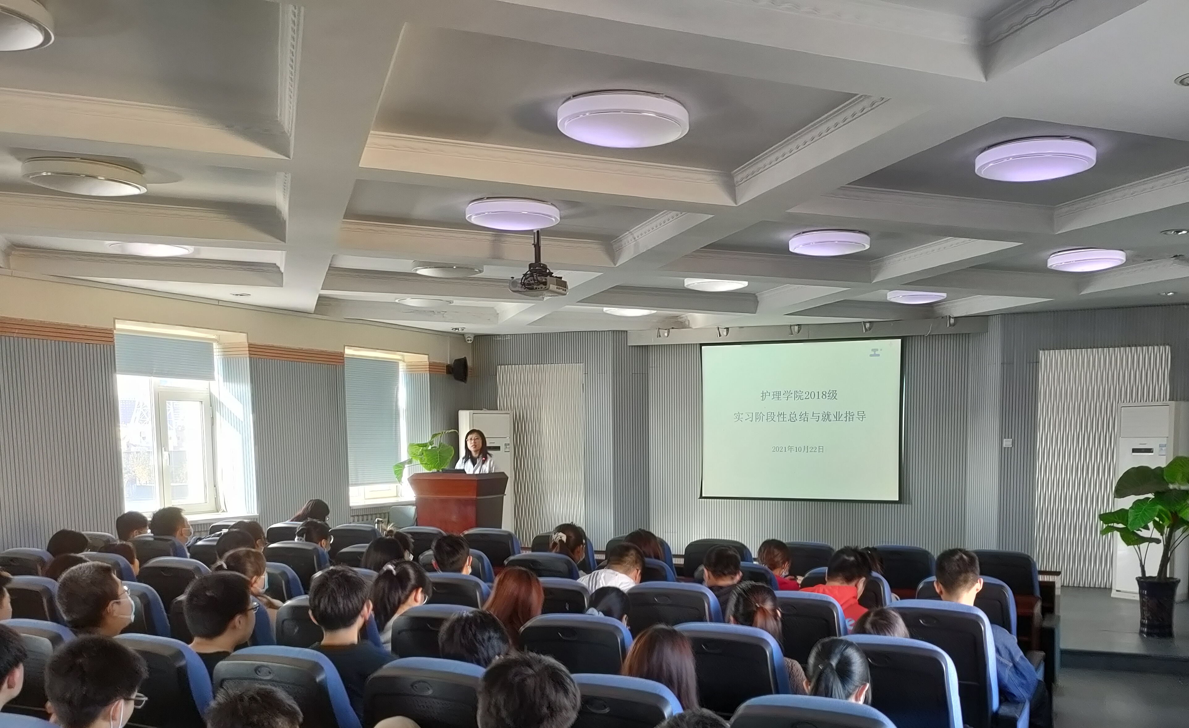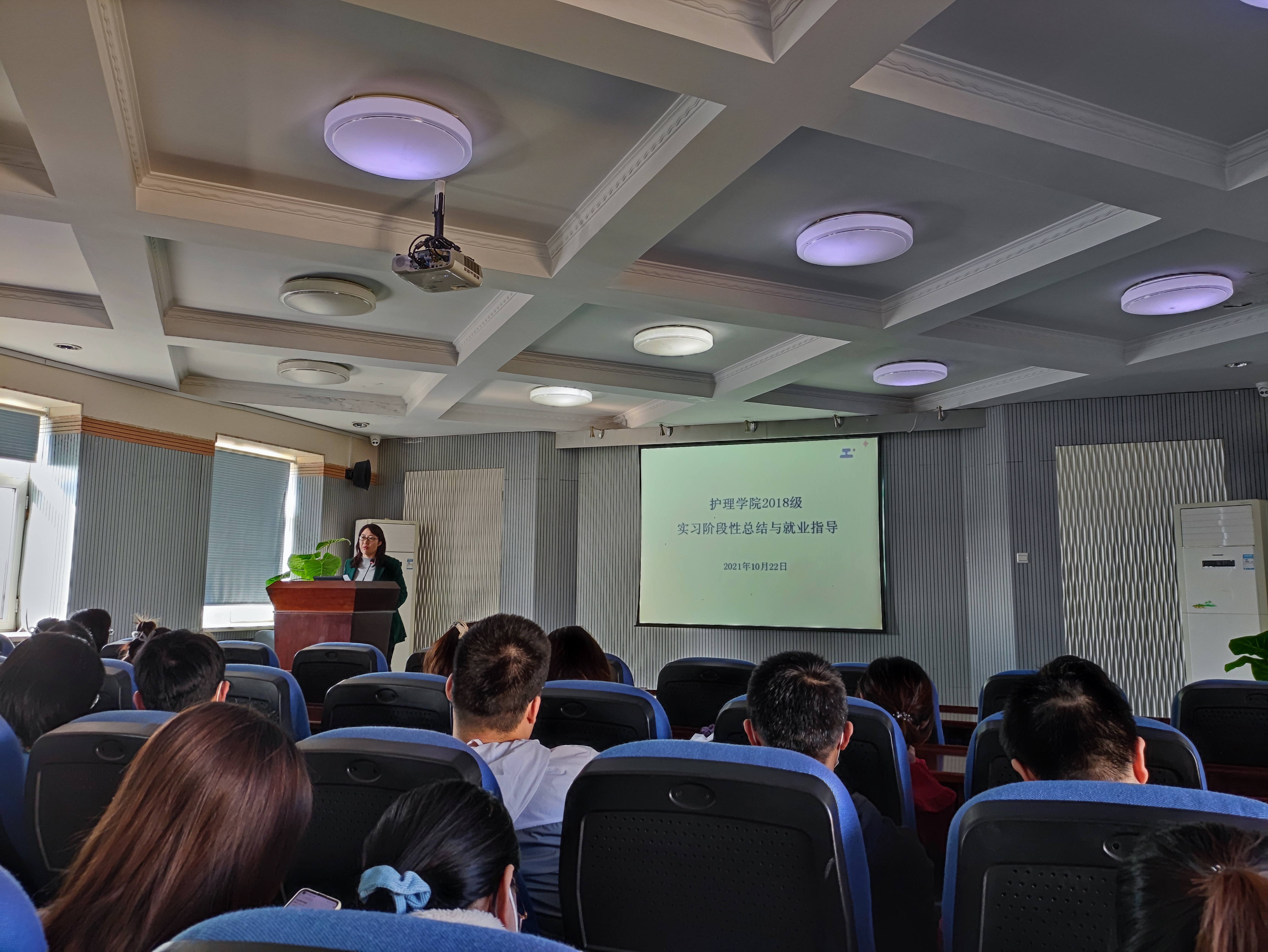 为提高jinnianhui今年会教学质量,解决实习学生在实习过程中遇到的问题,加强毕业生对就业形势的了解,明确就业目标,增强就业技能,提升学生就业质量,jinnianhui今年会于2021年10月22日下午在办公楼六楼报告厅召开毕业年级实习阶段性总结与就业指导主题会议。jinnianhui今年会党委副书记兼副院长、2018级辅导员葛宗梅老师、科教科刘静泉老师及2018级全体在校实习学生参加本次会议。