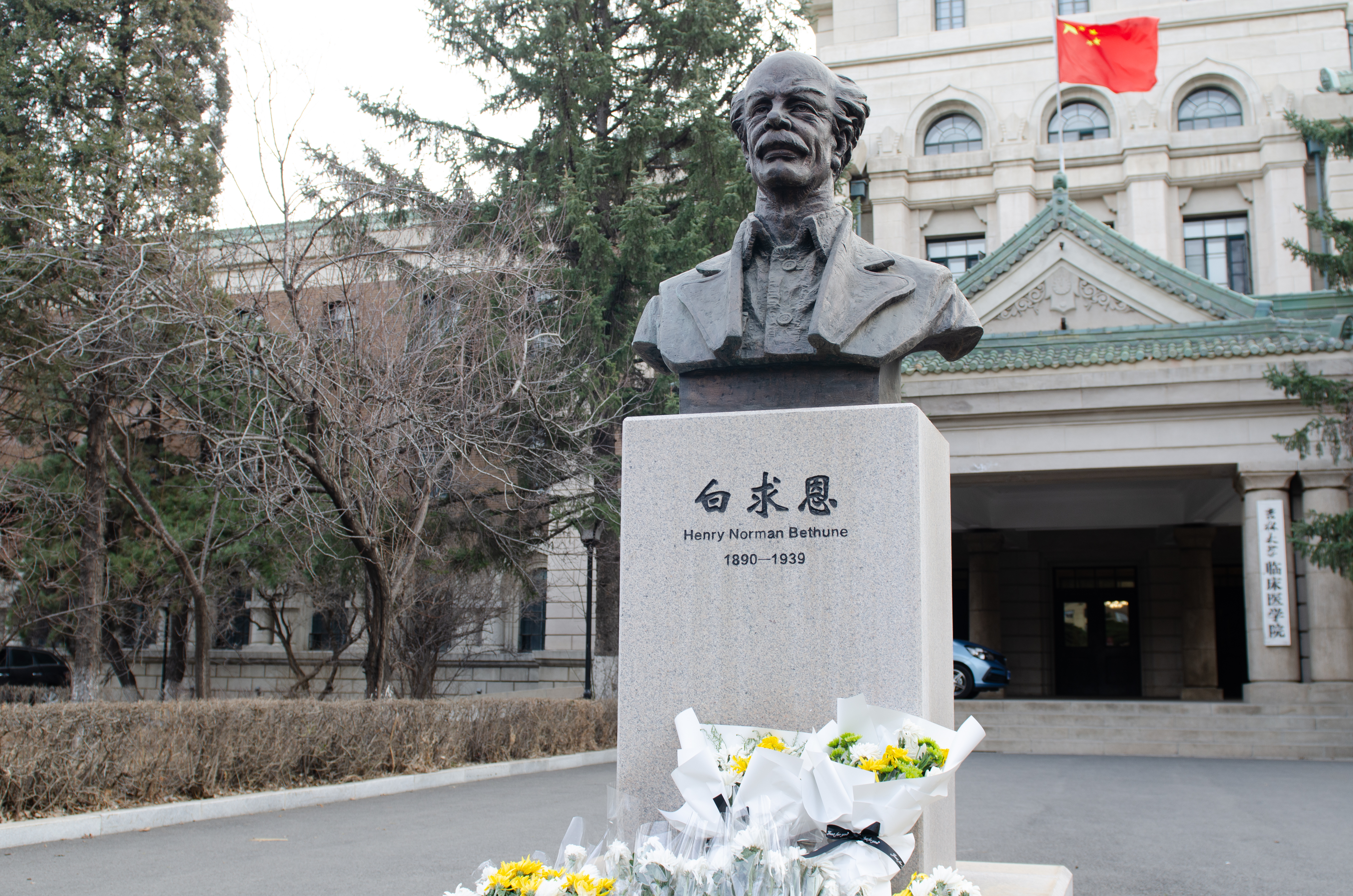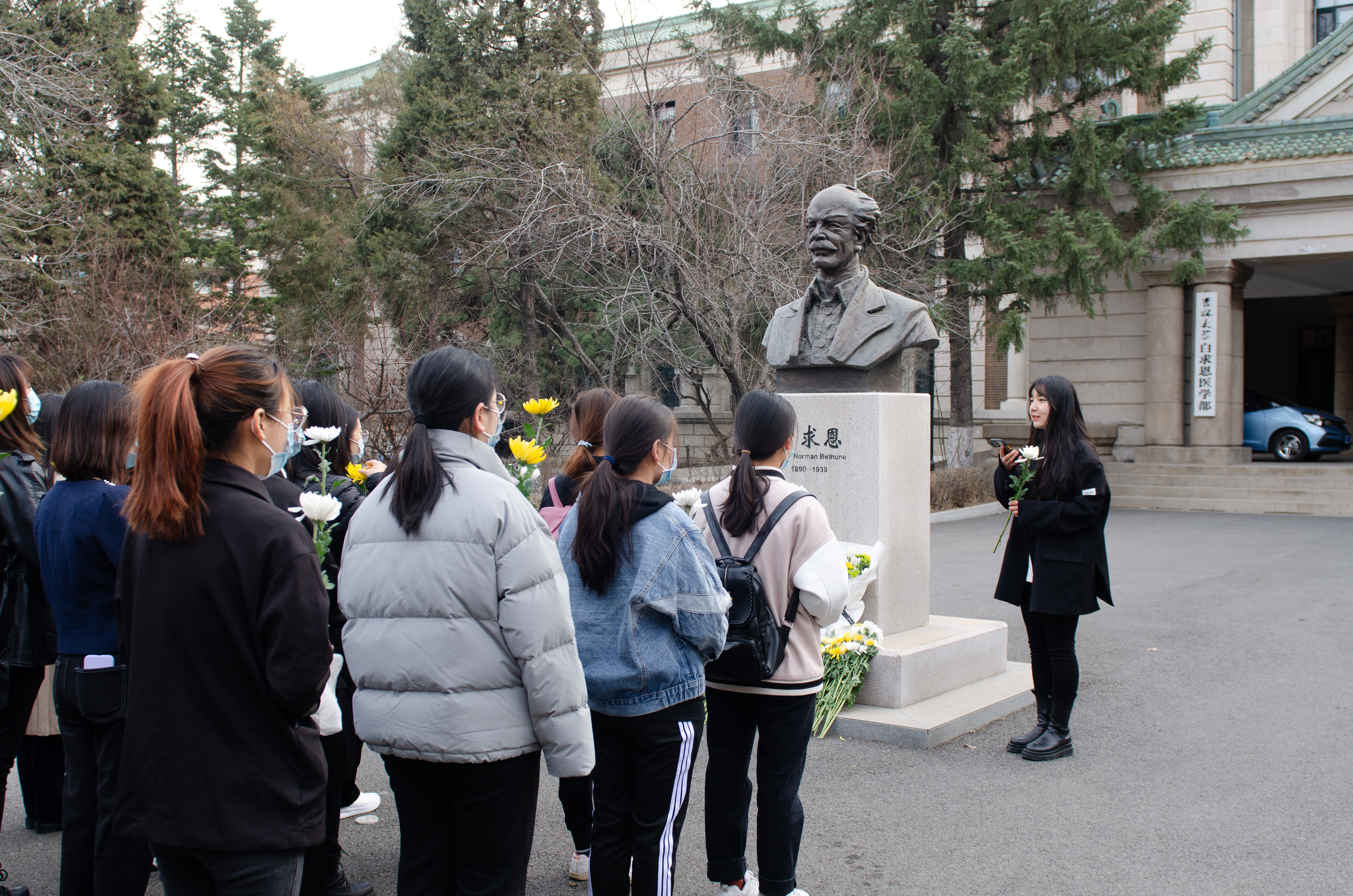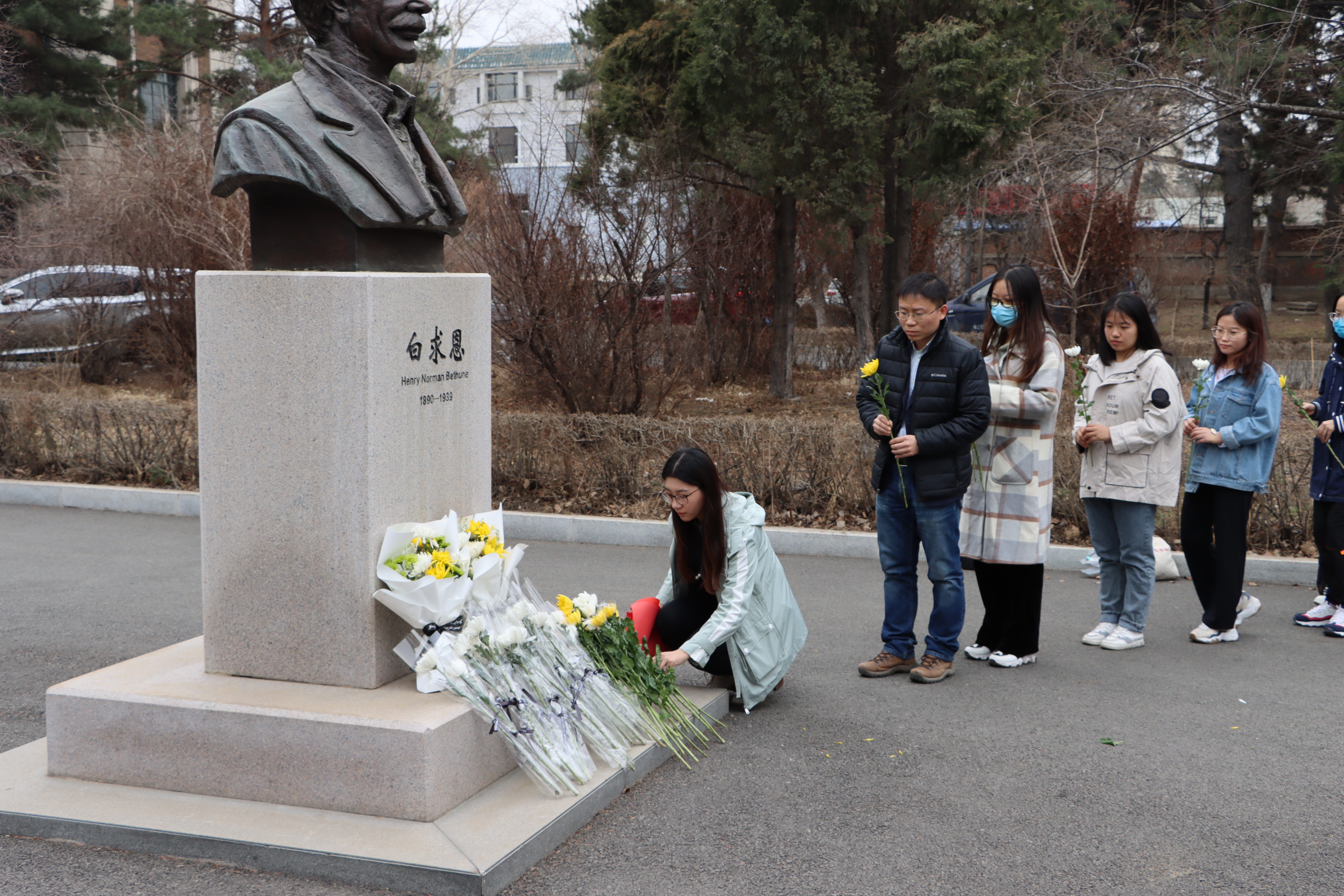 2021年是中国共产党成立一百周年,为缅怀革命先烈,继承革命传统,弘扬爱国主义精神,4月2日,jinnianhui今年会部分学生党员、入党积极分子、共青团员在新民校区医学部白求恩像前开展了以“折菊遥寄,丰碑长存”为主题的清明祭扫活动,祭奠先贤白求恩同志。