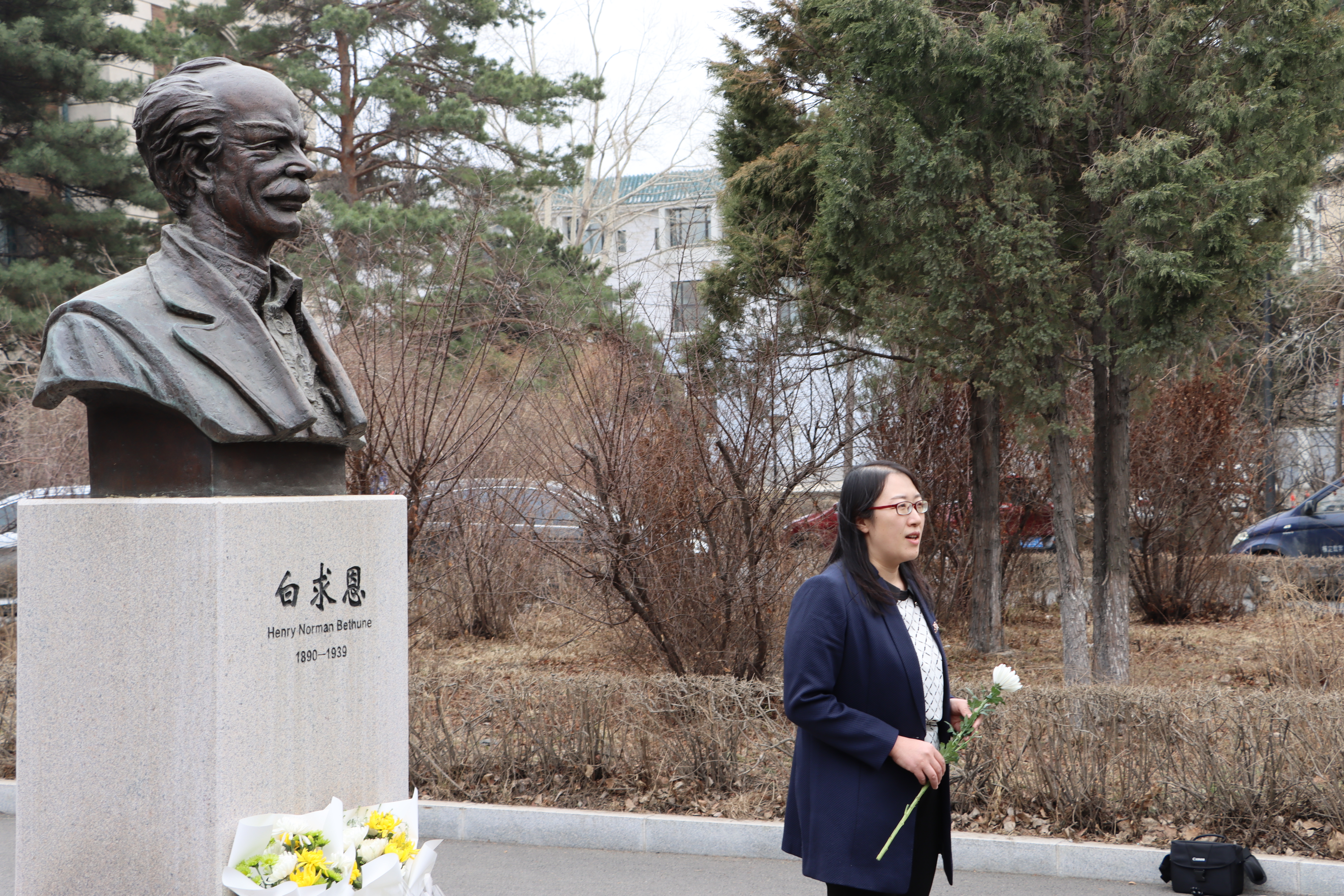 本次活动由jinnianhui今年会党委副书记兼副院长葛宗梅老师主持。葛老师希望同学们能够认真学习和发扬白求恩同志毫不利己、专门利人、无私奉献的精神,对待学习和工作要极端热忱、精益求精。随后,在白求恩像前,大家向白求恩同志默哀并依次上前敬献献花。